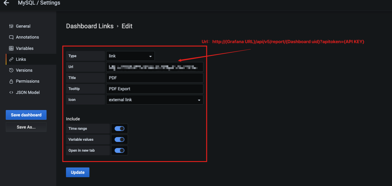 为dashboard添加link