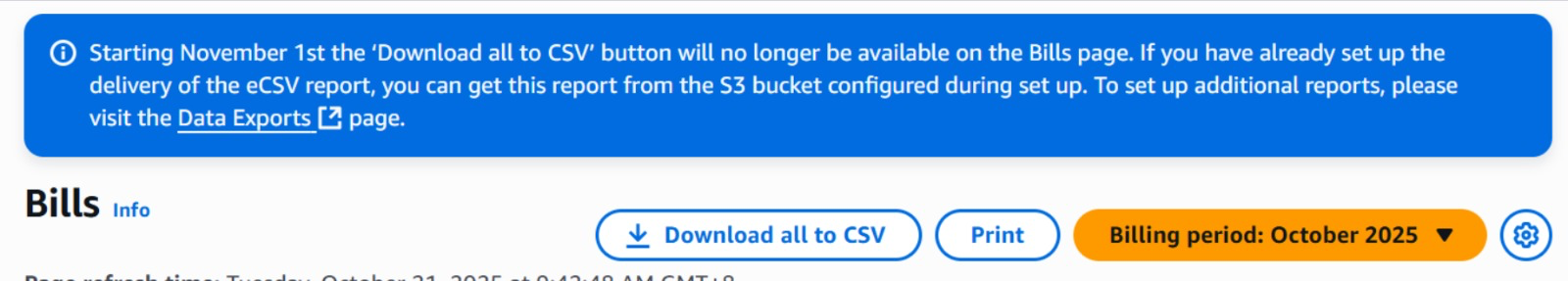 finance团队每个月需要在AWS上下载billing的csv,但是从11月开始,Download all to CSV这个功能就要下线了,AWS官方推荐使用Data Exports功能生成每个月的csv文件并且保存在S3中