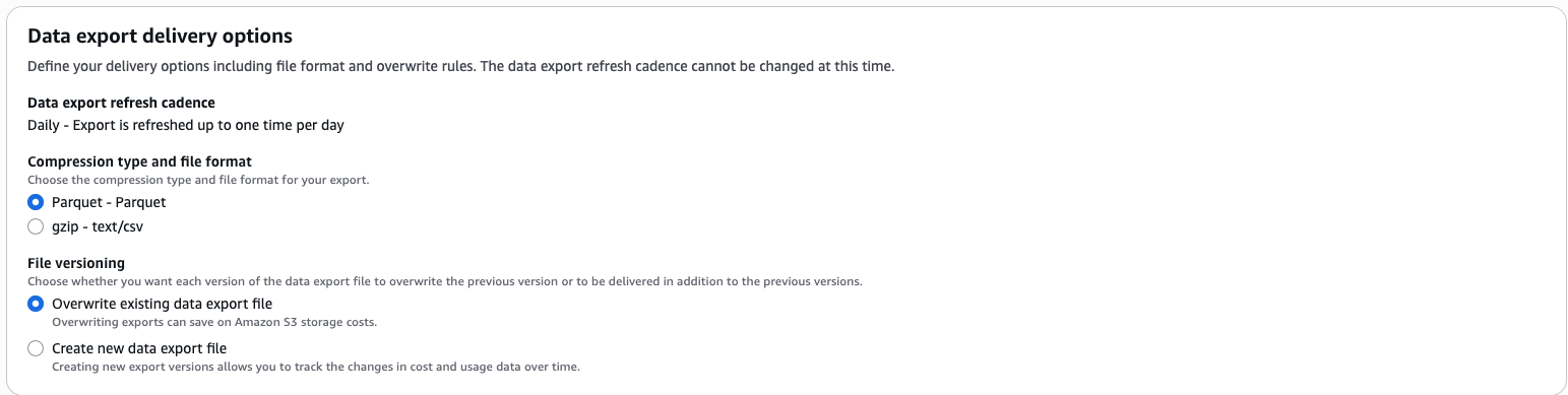 | Overwrite existing data export file | 每天保留最新的完整月度文件 | ❌ 没有 | 💰低 |