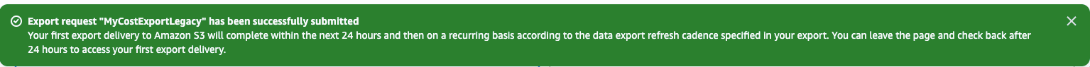 当你配置完export之后,需要24小时才能生成第一份报告,会在顶部告知你